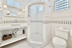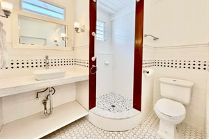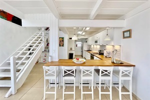 With its Caribbean-Mediterranean architecture, high wooden ceilings, and light-filled spaces, Villa Grande has been designed to provide a relaxing and welcoming experience. The villa is spread over two floors, featuring 3 bright bedrooms with louvered windows that allow you to enjoy the sea breeze and fall asleep to the soothing sound of the ocean, along with 2 bathrooms with showers, including one en-suite in the master bedroom. On the upper floor, the master suite has a king-size bed, and the secondary suite has a queen-size bed. The third bedroom, located on the lower floor, has two twin beds that can be converted into a king-size bed upon request, making it a perfect place for 3 couples or a family with kids.
